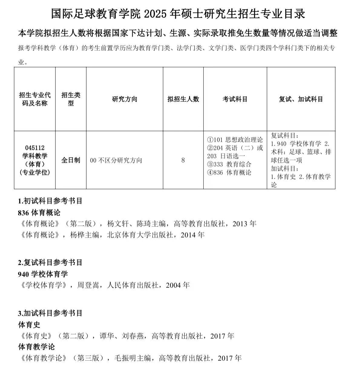 教育硕士(学科教学·体育)