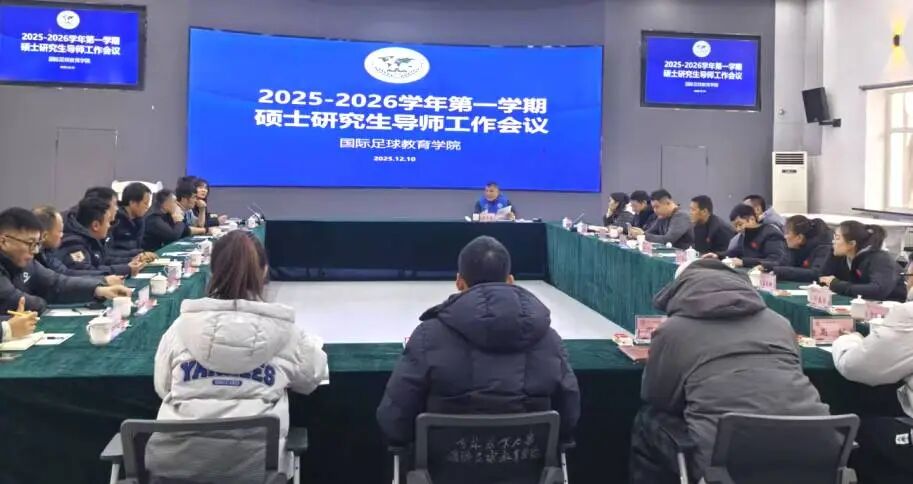 2025年12月10日,国际足球教育学院召开2025-2026学年第一学期硕士研究生导师工作会议,围绕研究生培养、学术创新等重点工作展开深入交流与部署。会议由张志成院长主持。