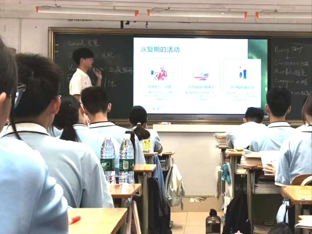 本周,中山市校园体育活动因天气与教学需求发生转变,大课间由跑操调整为跳绳、俯卧撑、高抬腿等原地素质练习,让学生在有限空间内也能充分锻炼,实习生积极协助组织,保障大课间有序进行。同时,受持续阴雨天气影响,教学阵地转向室内,实习生们陆续开展理论课程视频录制工作,结合趣味案例与专业知识,通过课堂为学生们传递体育理论知识,在为学生拓宽体育知识视野的同时,也为自己的实习经历留下充实而有意义的印记,让这段珍贵的教育实践成为未来职业发展的坚实起点