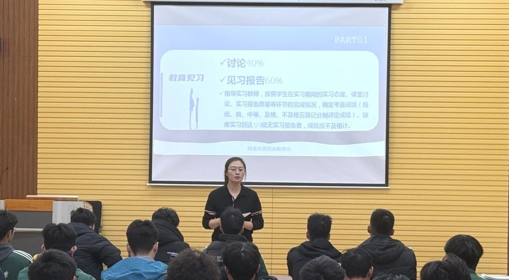 国际足球教育学院教师孟庆妍强调了体育教育见习对于学生成长为优秀体育教师的关键意义。着重讲解了见习要求和见习报告撰写规范,从见习期间的教学规范、安全准则,到与见习学校的沟通技巧,逐一明确标准;针对见习报告,详细拆解结构框架,强调需结合实践案例提炼反思,避免空泛表述,鼓励同学们要以积极主动的态度投入到教育见习中,不怕困难,勇于实践,充分展现学院学子的专业素养和精神风貌。