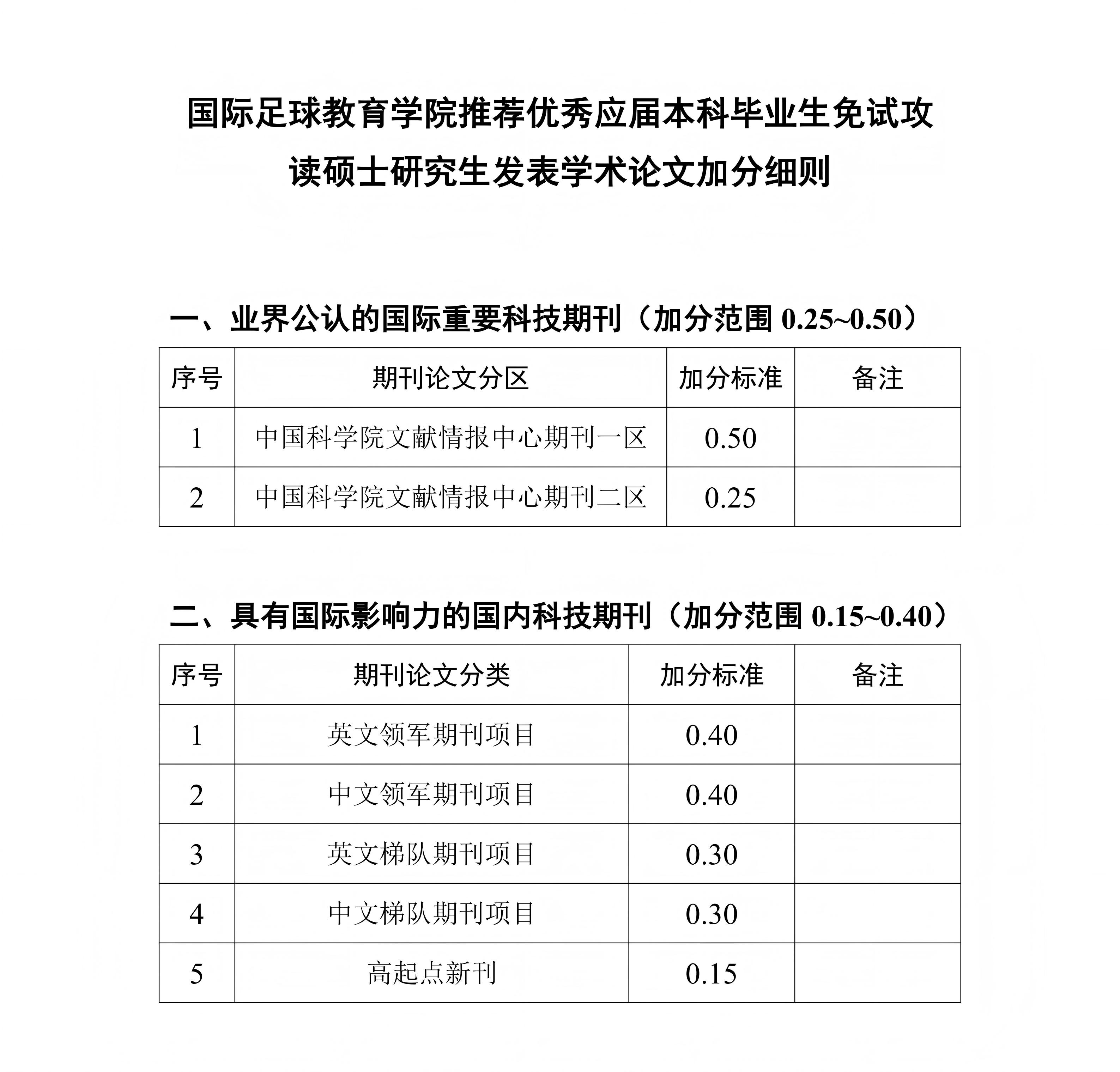 国际足球教育学院推荐优秀应届本科毕业生免试攻读硕士研究生发表学术论文加分细则