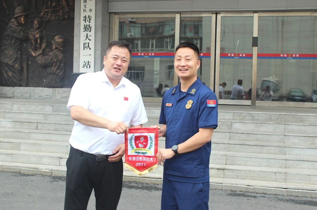 本次活动中,全体学生党员跟随讲解员的步伐,体验了多种消防设备、参观了队史馆,通过一件件实物展品、一张张任务照片,使学生党员接受了一次深刻的思想洗礼,大家深深感受到消防英雄们对党忠诚、纪律严明、赴汤蹈火、竭诚为民的训词精神和家国情怀。参观最后,赵立刚副书记代表学院向特勤一中队赠送足球与篮球,为丰富消防英雄的日常运动娱乐生活作出贡献。