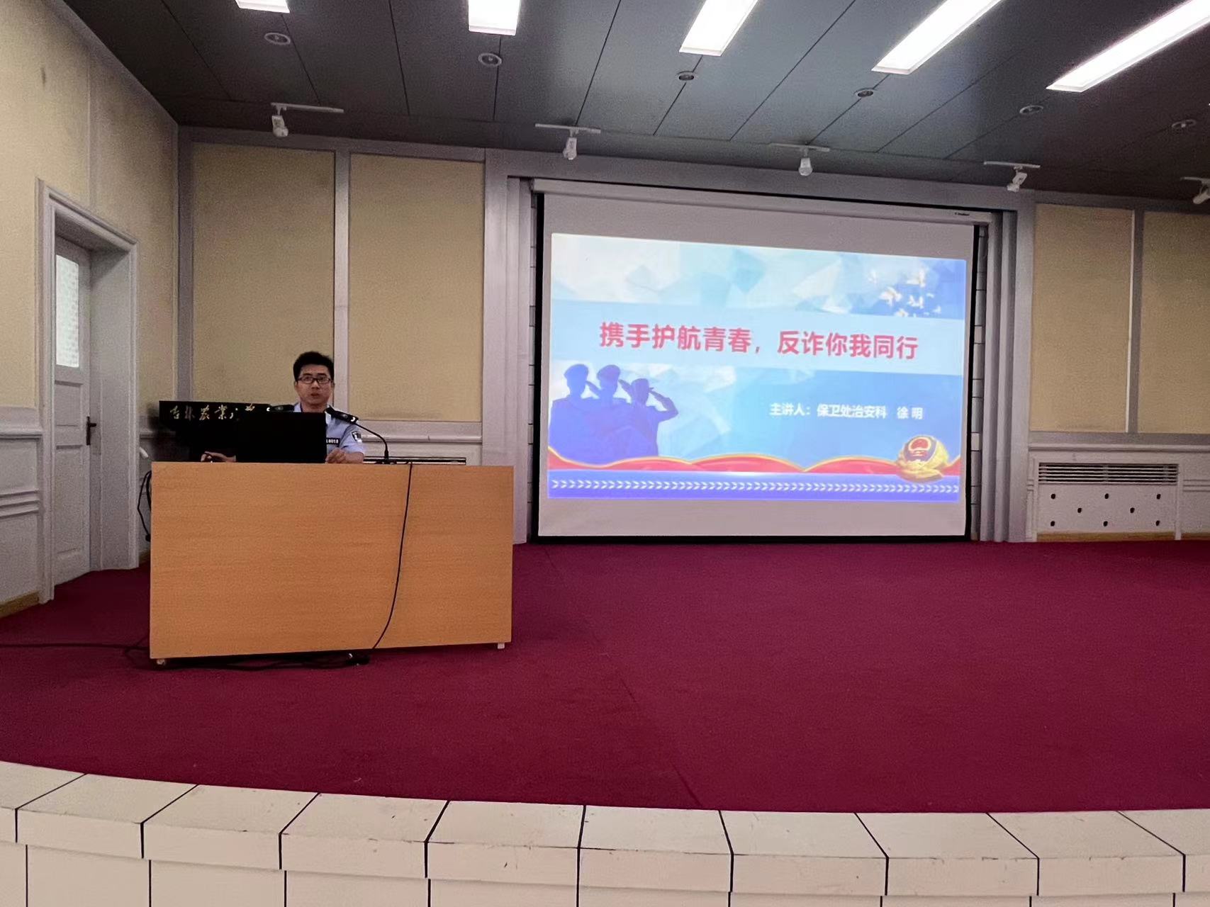 保卫处张勇老师和徐明老师主要从用电安全、交通安全、财产安全、人身安全等方面进行全面深入的安全知识宣讲,并针对学生如何处理突发问题、如何进行自救等进行教育与引导。此外,还进行了反电信诈骗的知识宣讲,对典型诈骗手段进行耐心讲解,通过实际案例让同学们深刻认识到电信诈骗的危害,引导学生从思想上高度重视,增强反诈意识,警示大家要谨记网络安全,将安全意识内化于心、外化于行。