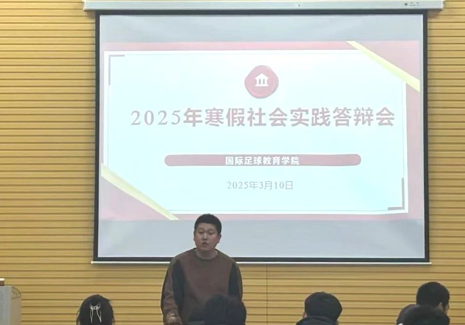 为全面总结学院2024-2025学年寒假期间社会实践工作成果,国际足球教育学院于3月10日在厚德教室组织召开了2025年寒假社会实践答辩会。团委书记唐少勋及学生代表参加了本次答辩会。