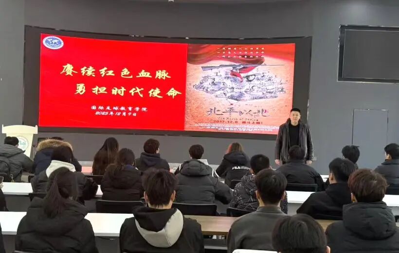 为纪念“一二・九”抗日救亡运动,传承红色基因,国际足球教育学院开展“红心映光影・绿茵守初心”主题观影活动,带领师生重温峥嵘岁月,让爱国情怀与责任担当扎根心中。