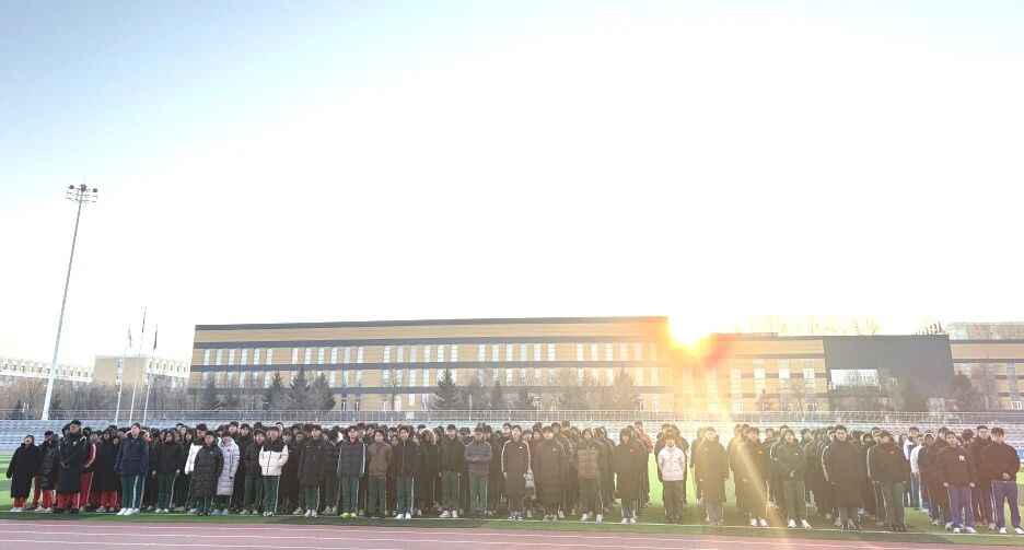 当激昂雄壮的《义勇军进行曲》响彻整个运动场,鲜艳的五星红旗迎着初升朝阳冉冉升起。全体师生神情庄重、肃立注目,面向国旗行注目礼,嘹亮的国歌声中饱含着对祖国的赤诚热爱与崇高敬意,庄重肃穆的氛围充分彰显出学院师生坚定的理想信念、昂扬的精神风貌与深厚的家国情怀。