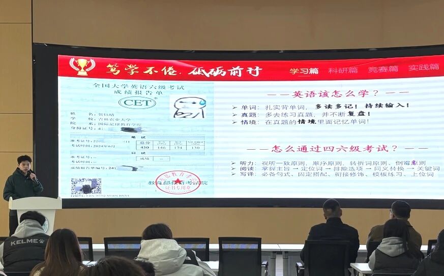此次学习经验分享会的顺利开展,不仅为学院学子搭建了互学互鉴、共同进步的交流平台,更有效缓解了新生的学业焦虑,帮助大家明晰学习思路、坚定前行信念。相信在优秀学长学姐的引领下,国际足球教育学院的学子们必将汲取榜样力量、砥砺奋进、争先创优,在青春的赛道上奋力奔跑,以实干笃行追逐理想,书写属于自己的精彩篇章!