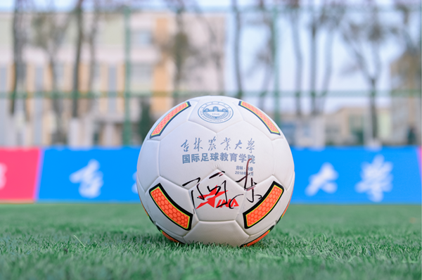 女足队员们看到阿东副省长后纷纷围拢过来,向其汇报学习和训练情况,并将全体队员签名的7号球衣作为礼物赠送给阿东;阿东在印有“吉林农业大学国际足球教育学院”的足球上签名,作为礼物回赠给女足队员。