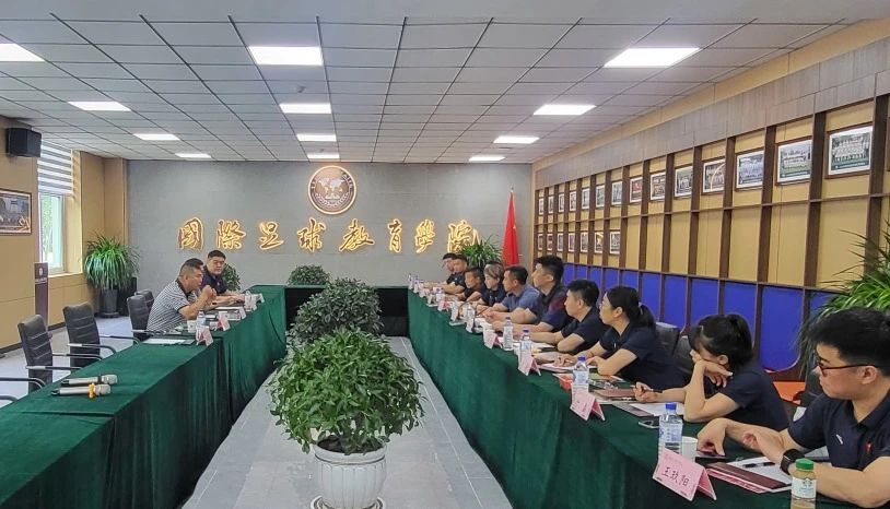 7月1日上午,辽宁大学体育教研部主任蒋吉、副主任刘欣然等人来我院进行专题调研。国际足球教育学院院长张志成、副院长陈启政、副院长顾克鹏、党总支副书记赵立刚、学工办副主任梅雪峰参加会议。