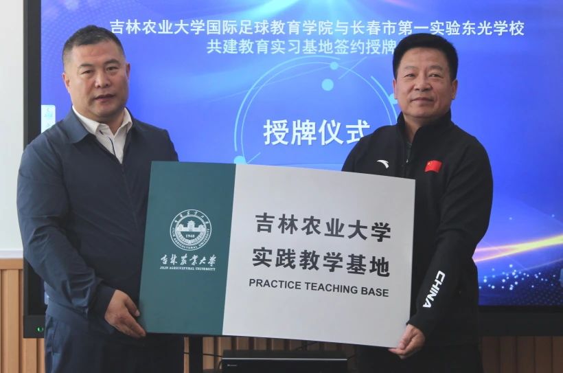 签约仪式上,张志成院长和葛岩校长分别代表各方签订《校地(地校)体育发展战略合作框架协议》,随后,张志成院长向葛岩校长授“吉林农业大学实践教学基地”铭牌。