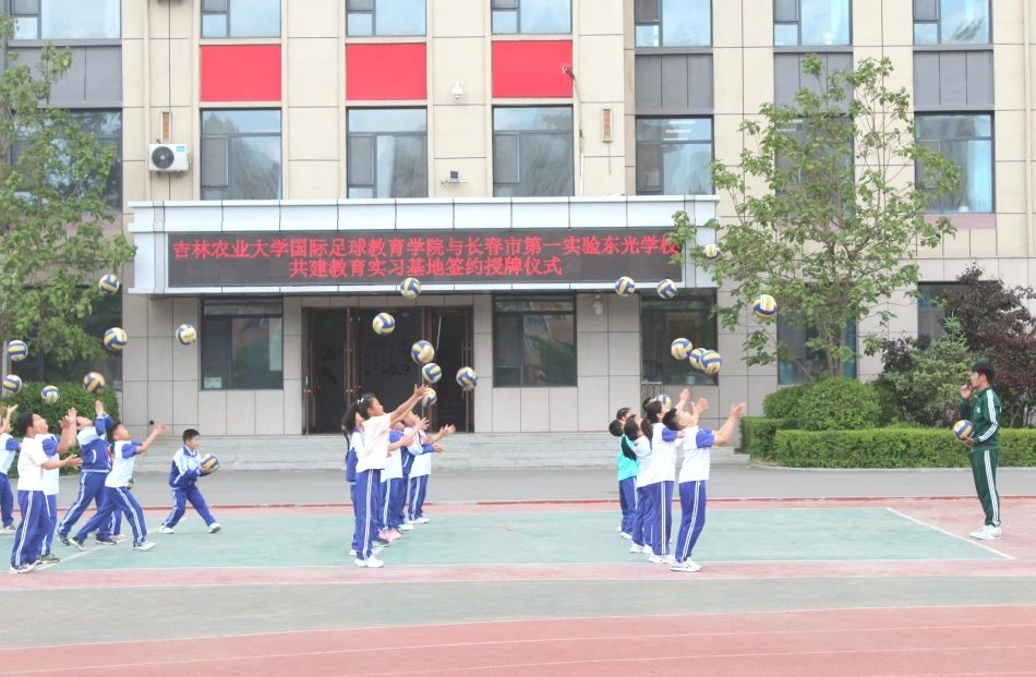 5月21日上午,吉林农业大学国际足球教育学院与长春市第一实验东光学校举行共建实践教学基地签约授牌仪式。学校校长葛岩、党总支书记王秀艳、副校长孟伟、副校长张蕾、国际足球教育学院院长张志成、副院长顾克鹏、副院长陈启政、副书记赵立刚及相关教师参加了此次签约仪式。