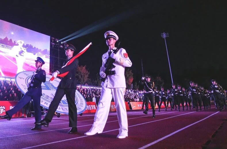 这是学校首次在夜间举办运动会开幕式,并首次采用中英双语播报,不仅提升了视觉感染力,也与全校师生共同见证了体育精神在灯光与星辉下的璀璨绽放。这不仅是一场运动会,更是一张彰显学校综合实力与文化自信的立体名片。