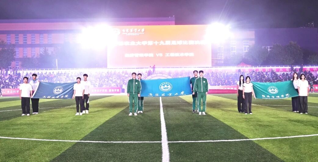 开幕式余温未散,激烈的角逐便已展开。作为开幕式的压轴环节,经济管理学院与工程技术学院的第十九届体育节足球决赛在万众瞩目下鸣哨开赛。这场夜晚的巅峰对决,在绿茵场上演了速度、力量与战术的较量,不仅是对运动员体能与意志的考验,更是对农大体育文化的一次深情致敬。