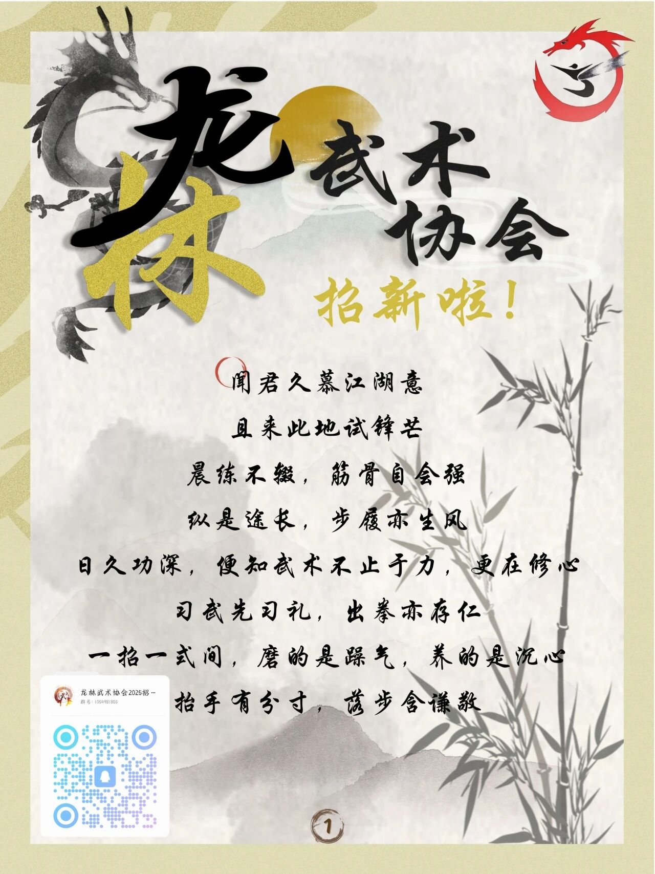 龙林武术协会以习武修身、砺志强身为宗旨,传承中华武术精神。协会开展功法、套路与防身技巧教学,在练习中强健体魄、磨炼意志,以武会友,尽显少年朝气与武者风范。