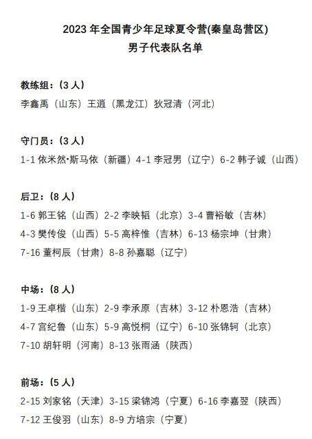 按照《教育部办公厅关于举办2023年全国青少年校园足球夏令营活动的通知》(教体艺厅函〔2023〕18 号)要求,教育部于2023年8月13日—19日在国家体育总局秦皇岛训练基地(中国足球学校)(地址:河北省秦皇岛市海港区文体路5号)举办全国青少年校园足球夏令营。