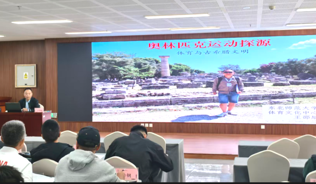 在培训首日,东北师范大学王邵励教授开展了以奥林匹克运动探源——体育与古希腊文明为主题的专题讲座。王教授以深厚的学术积淀,系统阐释了奥林匹克运动与古希腊文明之间的深刻渊源,带领全体参训教师完成了一场跨越千年的体育文化寻根之旅。整场讲座脉络清晰、史料丰富,不仅揭示了奥林匹克运动深厚的文化根基,也阐释了其在当代传承的精神实质,为理解体育与人类文明发展的互动关系带来了深刻启迪。
