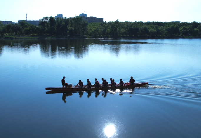 骄阳似火!一年一度的端午节龙舟比赛将如期而至,吉林农业大学龘龘龙舟队正全力备战龙舟比赛。5月30日,龙舟队在学校蓝湖水域抬船下水进行备战训练