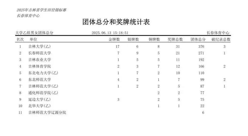 6月13日,由吉林省学生体育协会主办的2025年吉林省校园田径锦标赛在长春体育中心开赛。吉林农业大学田径代表队在长春体育中心顺利完赛,并取得优异成绩。