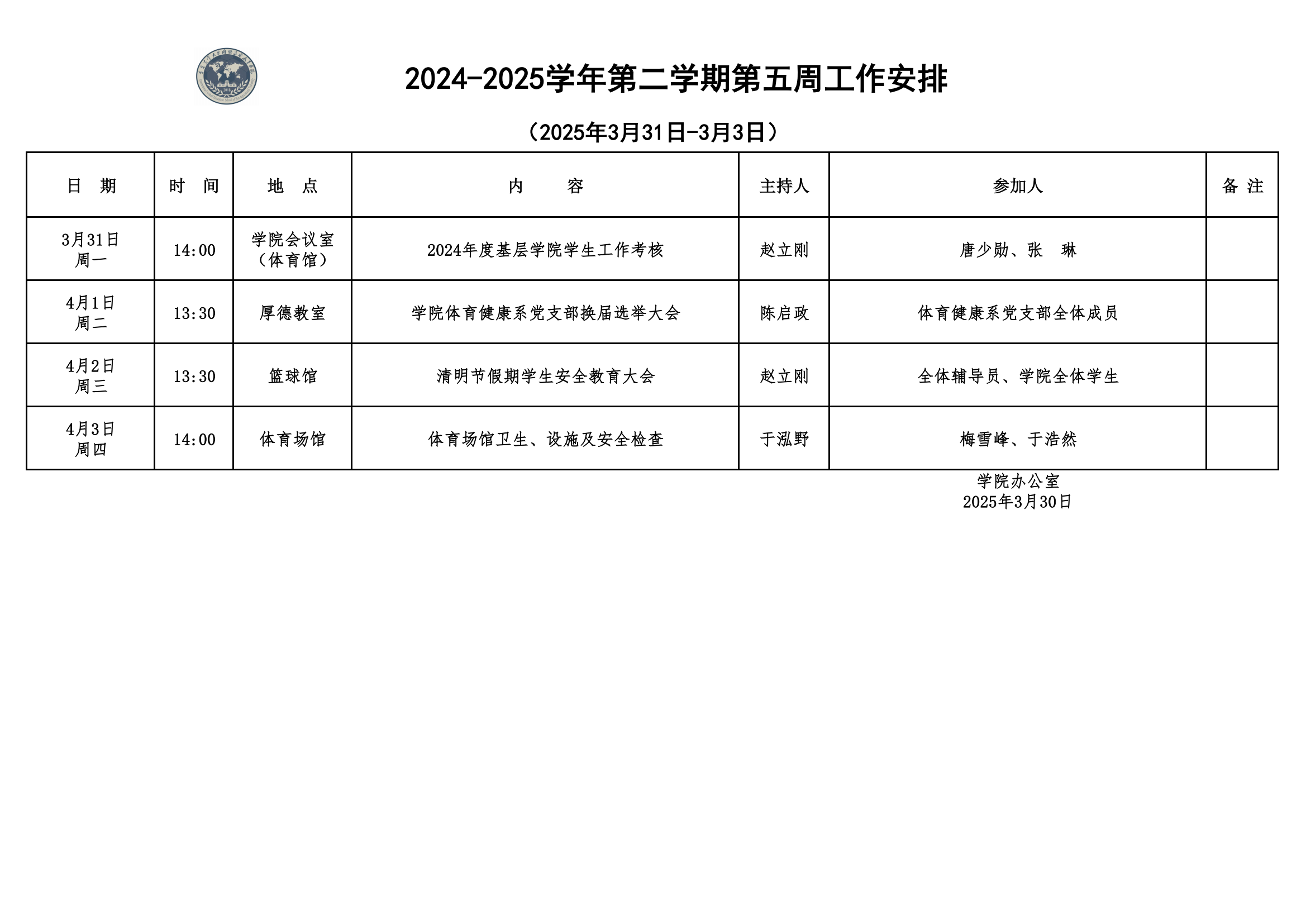 2024-2025学年第二学期第五周工作安排