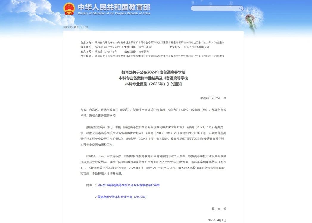 近日,教育部发布了《教育部关于公布2024年度普通高等学校本科专业备案和审批结果及<普通高等学校本科专业目录(2025年)>的通知》(教高函〔2025〕3号),我校申报的“足球运动”本科专业获批备案,拟将于2025年招生。